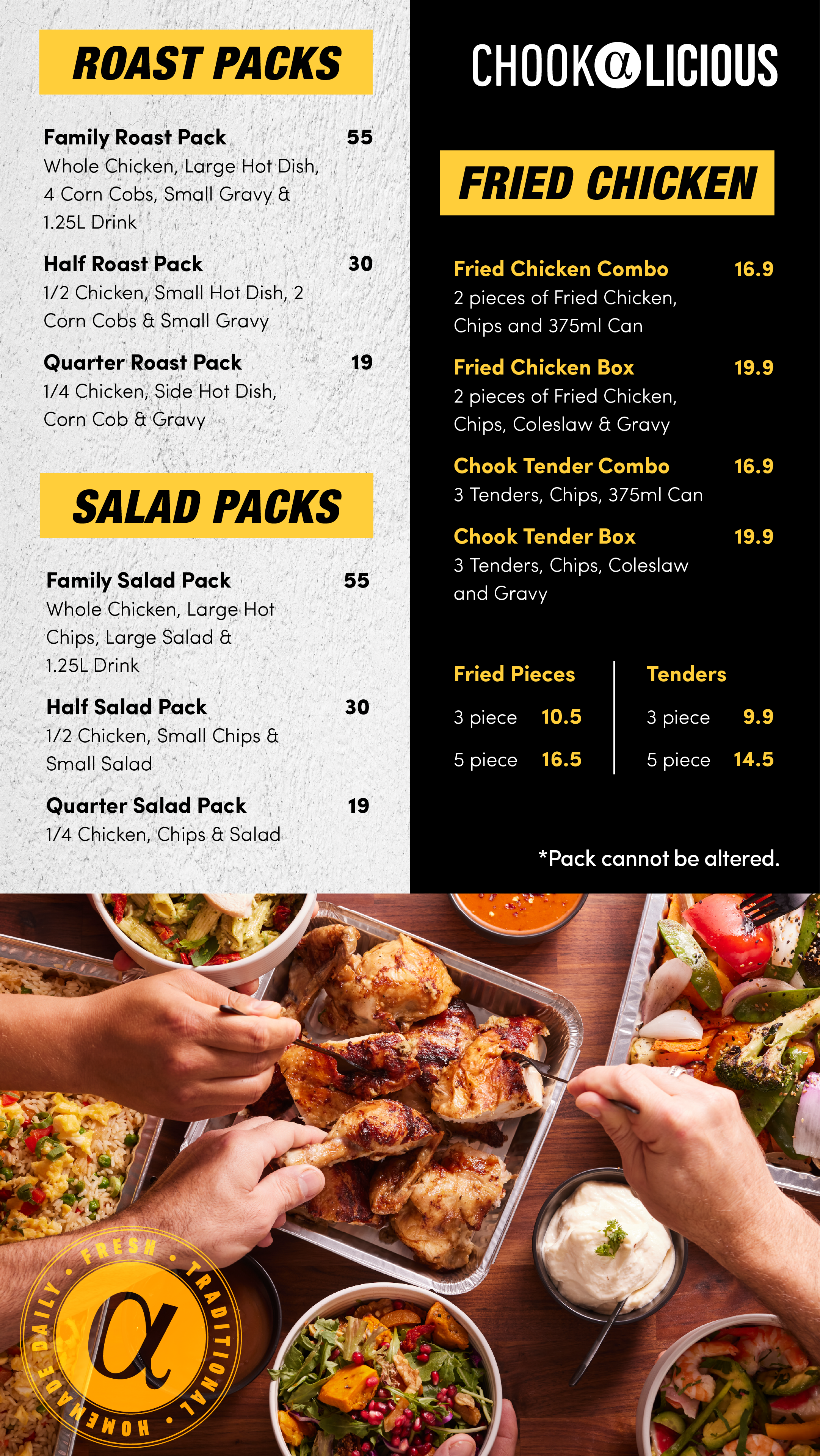 At Chook A Licious, we're committed to quality, flavour, and customer satisfaction. We use only the freshiest ingredients and time-honoured recipes to create mouth-watering dishes.